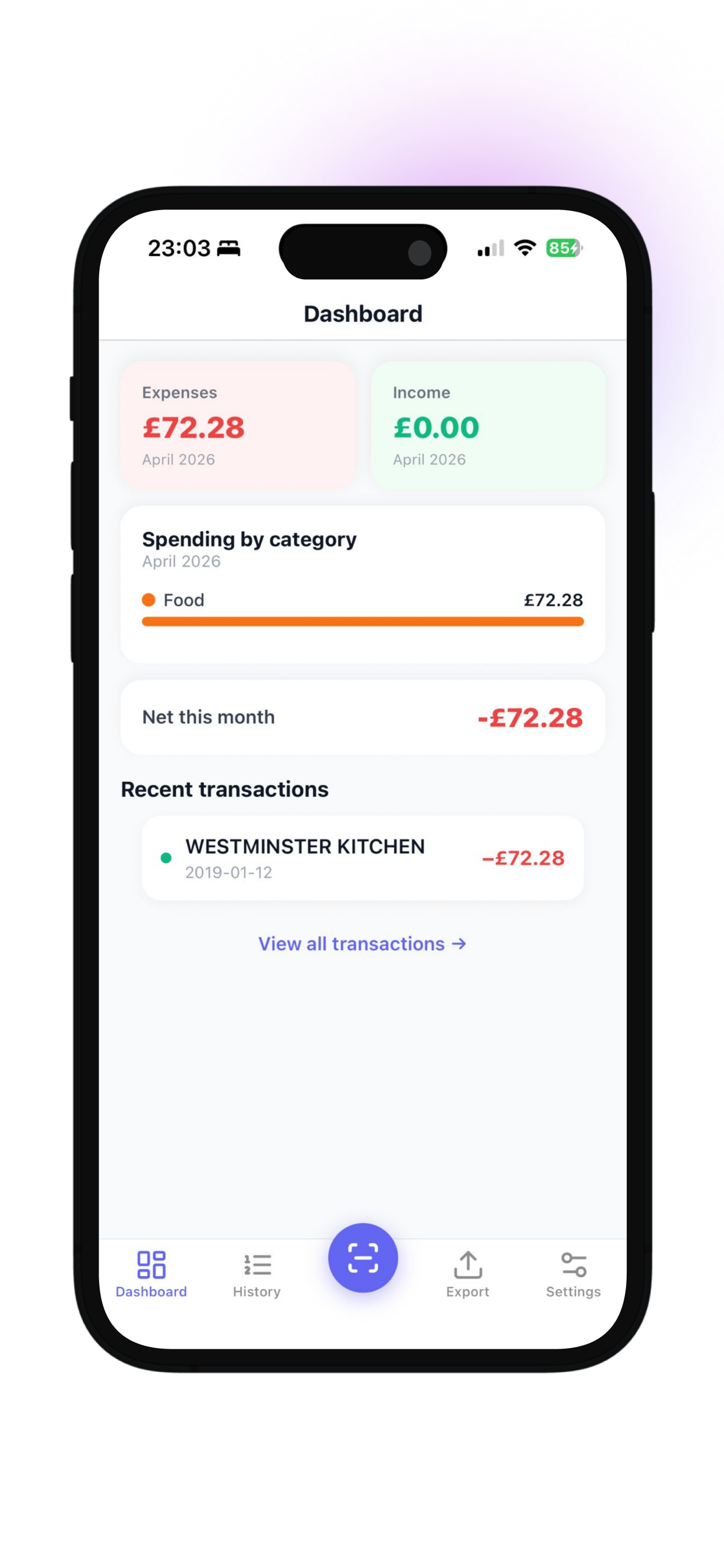 Your expenses are organised instantly after each scan ready when you need them.